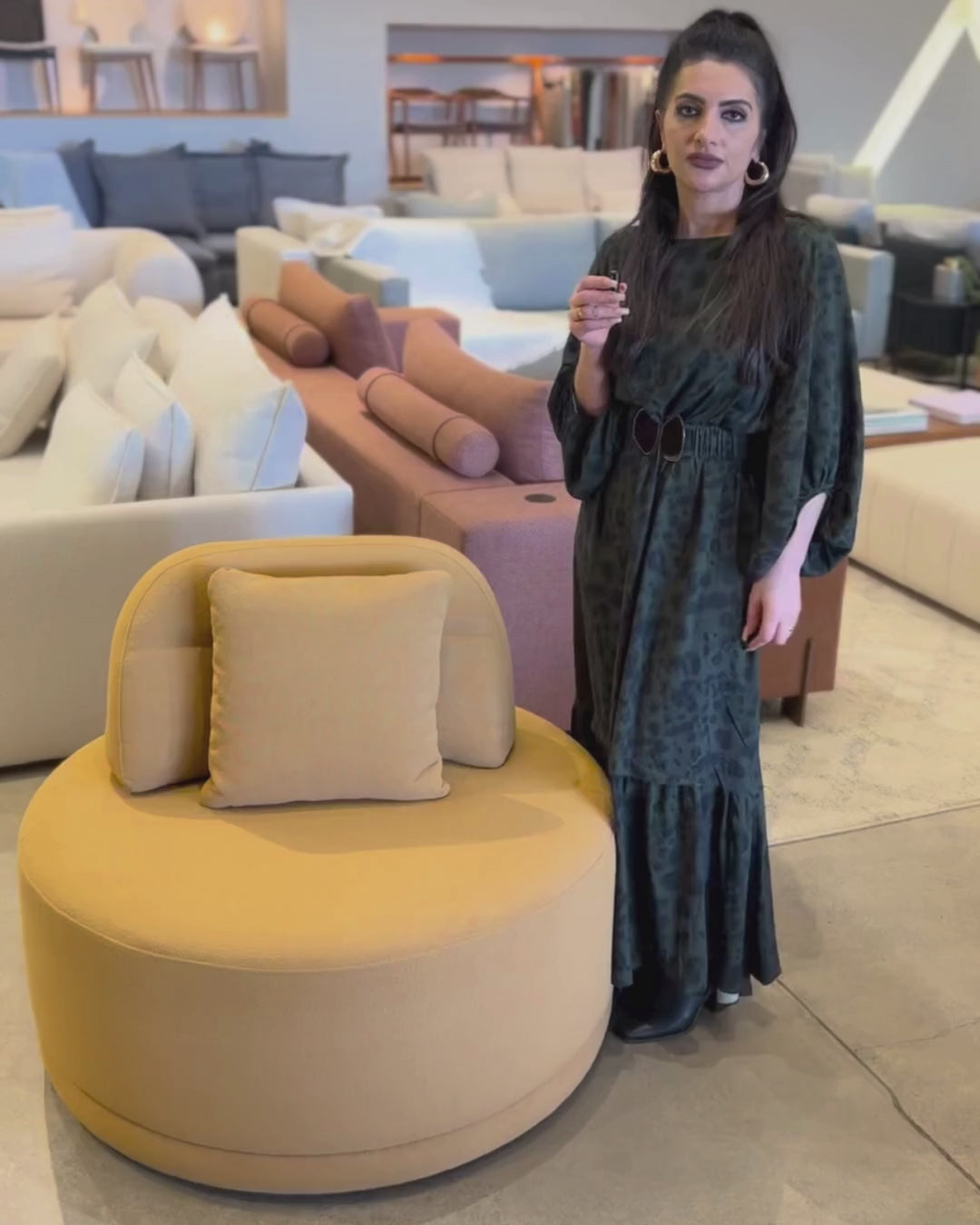 A Poltrona Eleganza é uma fusão perfeita de design arrojado e conforto personalizável. Com seu formato arredondado, ela adiciona uma dose de modernidade e elegância a qualquer espaço.